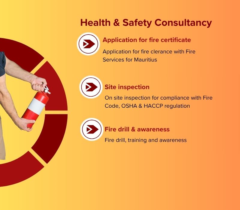 We assess compliance with Mauritius Fire Code and OSHA for workplace safety and accompany you in the application process for fire certificate in compliance with Mauritius Fire & Rescue Service Act 2013.